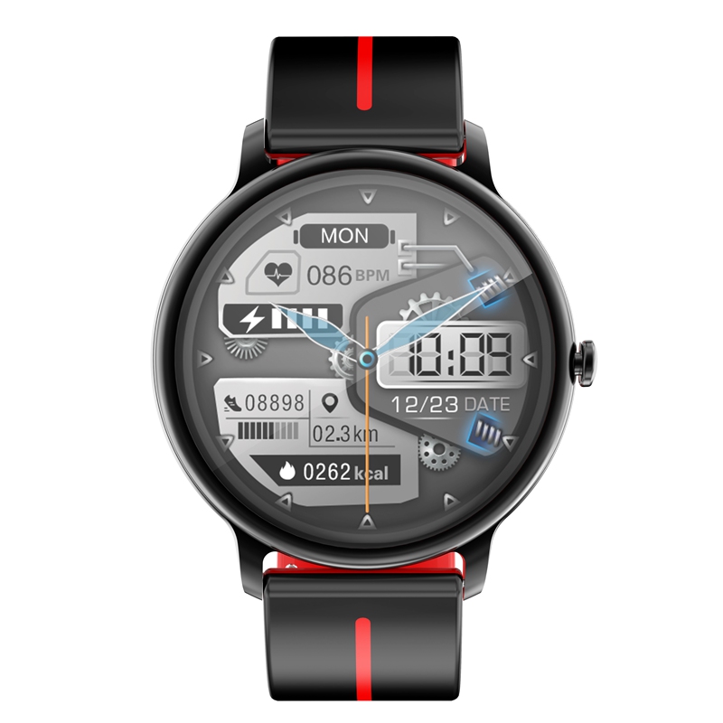 The smart watch MW08 adopts a unique stylish round screen design and ultra - thin body, which brings unprecedented light weight. Polycarbonate case and silicone brand. All day health monitoring. IP68 waterproof. Bluetooth call, free hands, easy to answer more efficiently.