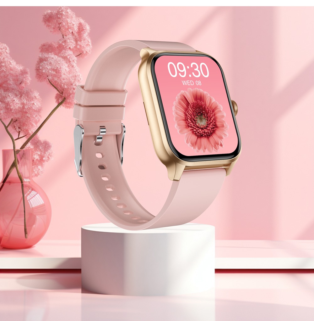 Women's smart wristwatch G6. High definition large screen elegant blooming. Bluetooth call with ease. 24-*hour health monitoring. Real time detaction of blood pressure and oxygen. Multiple sports have trace to follow. Female health reminder.