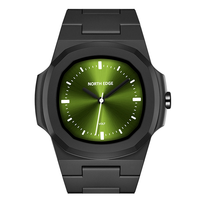 North Edge solar-powered watch -- EVOQUE 2. Featuring solar drive movement technology, EVOQUE 2 harnesses the power of sunlight to ensure consistent and eco-friendly operation. With 304 stainless steel cover, it's built to withstand the rigors of everyday wear. Plus, with a waterproof rating of 50 meters, you can confidently take it on all your aquatic adventures.