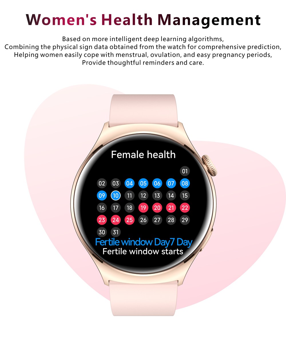 A combination of charm and quality. Fashionable styles and stylish. 1.28 inches amoled high-definition color screen and High definition call time online. Blood pressure and oxygen monitoring. 100+ multiple bulit-in dials. Sports mode. Long-lasting battery life.