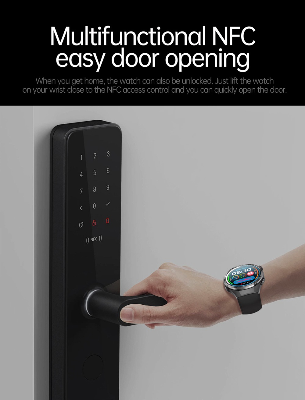 The Smart Watch E18 Pro redefines elegance and intelligence with its imperial-quality design and cutting-edge features. Crafted like delicate jade, its exquisite aesthetics blend seamlessly with advanced functionality, offering a vibrant color big screen for crisp visuals and dual Bluetooth calling for high-quality conversations with vibration alerts—never miss an important call again. Stay on top of your health with blood pressure, heart rate, and blood oxygen monitoring, all in one sleek device, while NFC access control allows effortless door unlocking with just a wrist lift. Designed for an active lifestyle, it includes multi-sport modes, weather forecasts, and customizable dials, along with AAC speakers and Bluetooth music support for your favorite playlists anytime, anywhere. Enhanced by magnetic charging, the E18 Pro delivers long-lasting battery life for uninterrupted use, combining sophistication and innovation—where quality meets intelligence.
