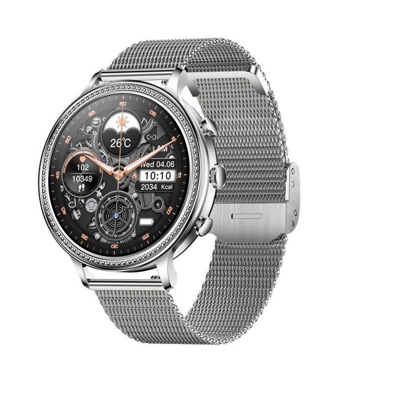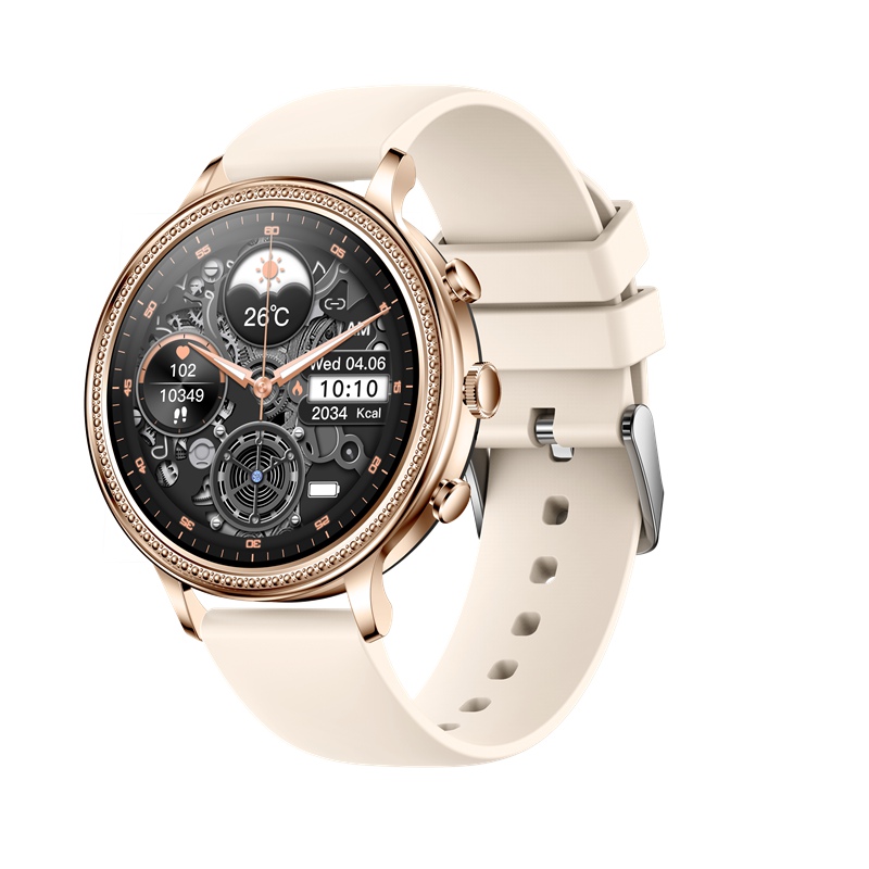 A combination of charm and quality. Fashionable styles and stylish. 1.28 inches amoled high-definition color screen and High definition call time online. Blood pressure and oxygen monitoring. 100+ multiple bulit-in dials. Sports mode. Long-lasting battery life.
