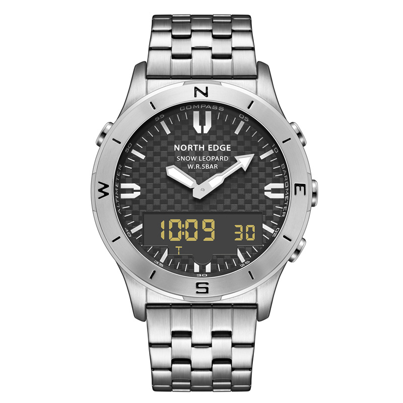 The Execellent outdoor adventure watch -- Snow leopard. The entire watch is made of all metal, integrating the main outdoor functions into a solid structure. It is combined with an altimeter, barometer, compass and thermometer to transform into an excellent adventure equipment.