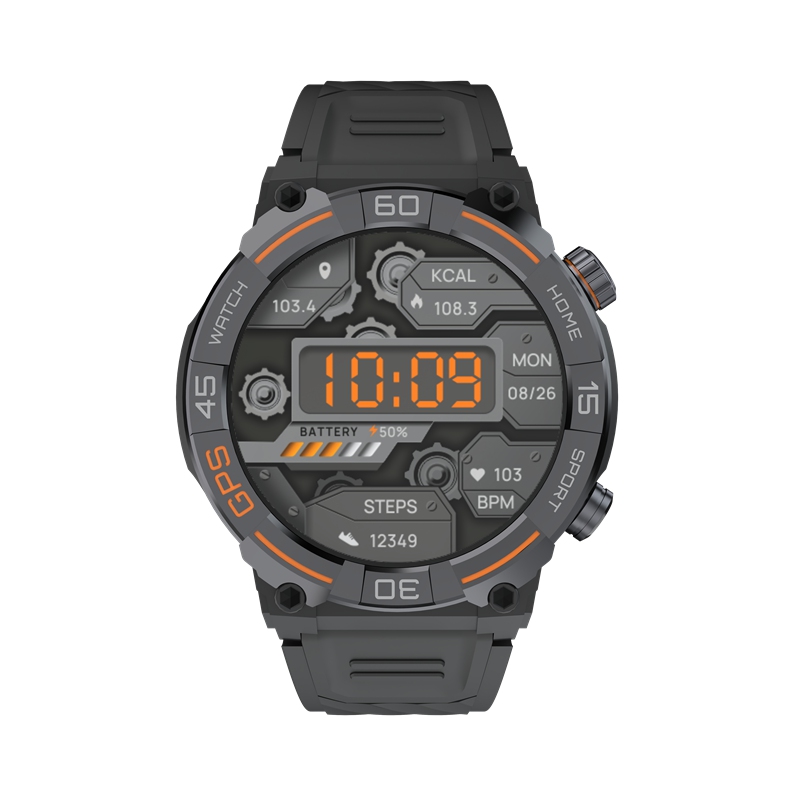 GPS sports watch HK08, 1.43 inch amoled high definition color screen. GPS satellite trajectory navigation, with a track to follow every step. Real time guide to movement direction. The altitude, barometer and compass are always to know. Plus health function, 60+ sports mode, intelligent bluetooth calling, real time information push functions.