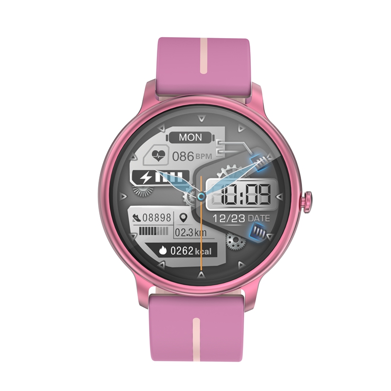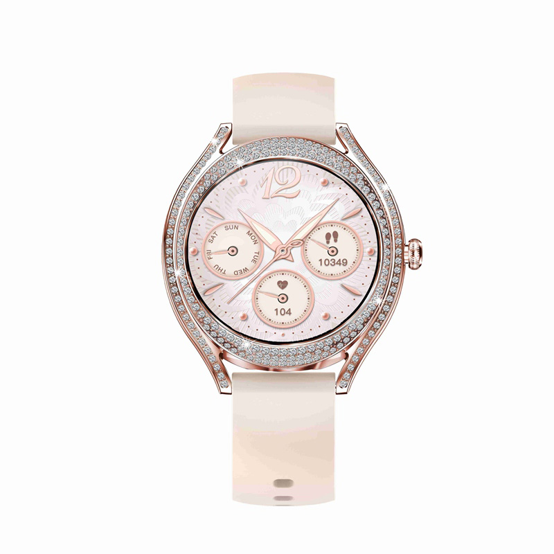 A combination of charm and quality. Fashionable styles and stylish. 1.28 inches amoled high-definition color screen and High definition call time online. Blood pressure and oxygen monitoring. 100+ multiple bulit-in dials. Sports mode. Long-lasting battery life.