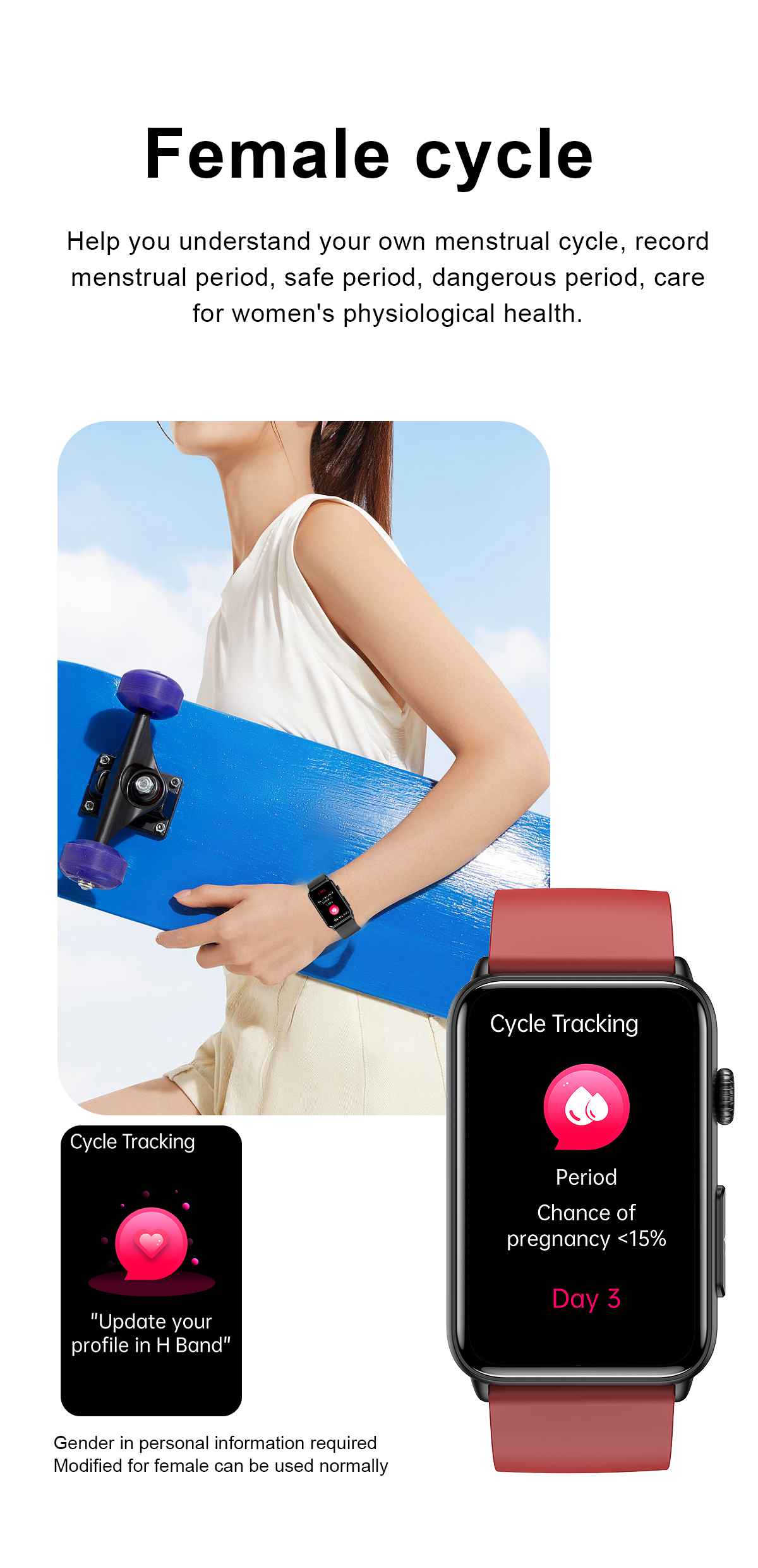 Smart watch G98 can monitor blood oxygen, blood pressure, and sleep, allowing you to stay informed about your health. This smartwatch also brings entertainment to your wrist. Connect it to your smartphone, and you can control music playback easily. For female users, setting physiological cycle info on the APP enables the watch to show the current day's physiological state. In the fitness realm, it offers diverse activity scenes.