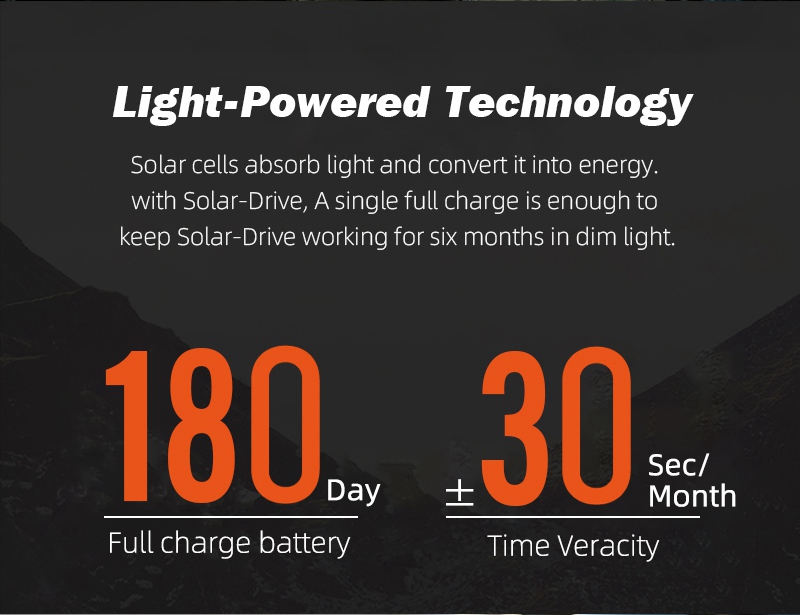 On a full charge, an Solar-drive watch runs from moths even in darkness with no need for regular battery replacement