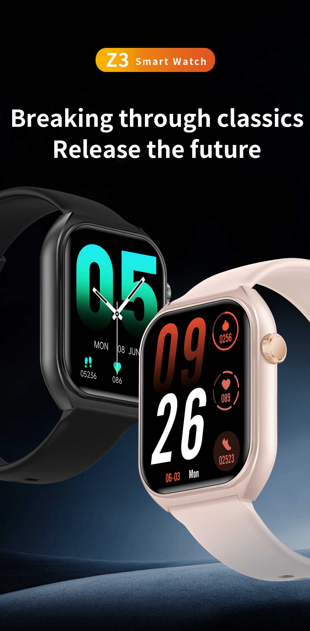 The Z3 smart watch is here to redefine your wrist-worn experience! It breaks through the classics and unleashes the future. With its multi-sport modes, scientific exercise is at your fingertips, allowing you to work out whenever the inspiration strikes. Need to stay informed? Just raise your hand and important information is right there. Stay always online and keep in close contact with your world through its seamless connectivity. The built-in AI voice assistant is ready to assist you with any task. And don't worry about the elements, as it features IP67 waterproof protection. Say goodbye to frequent charging woes too, thanks to its long-lasting battery life that transcends the constraints of time.