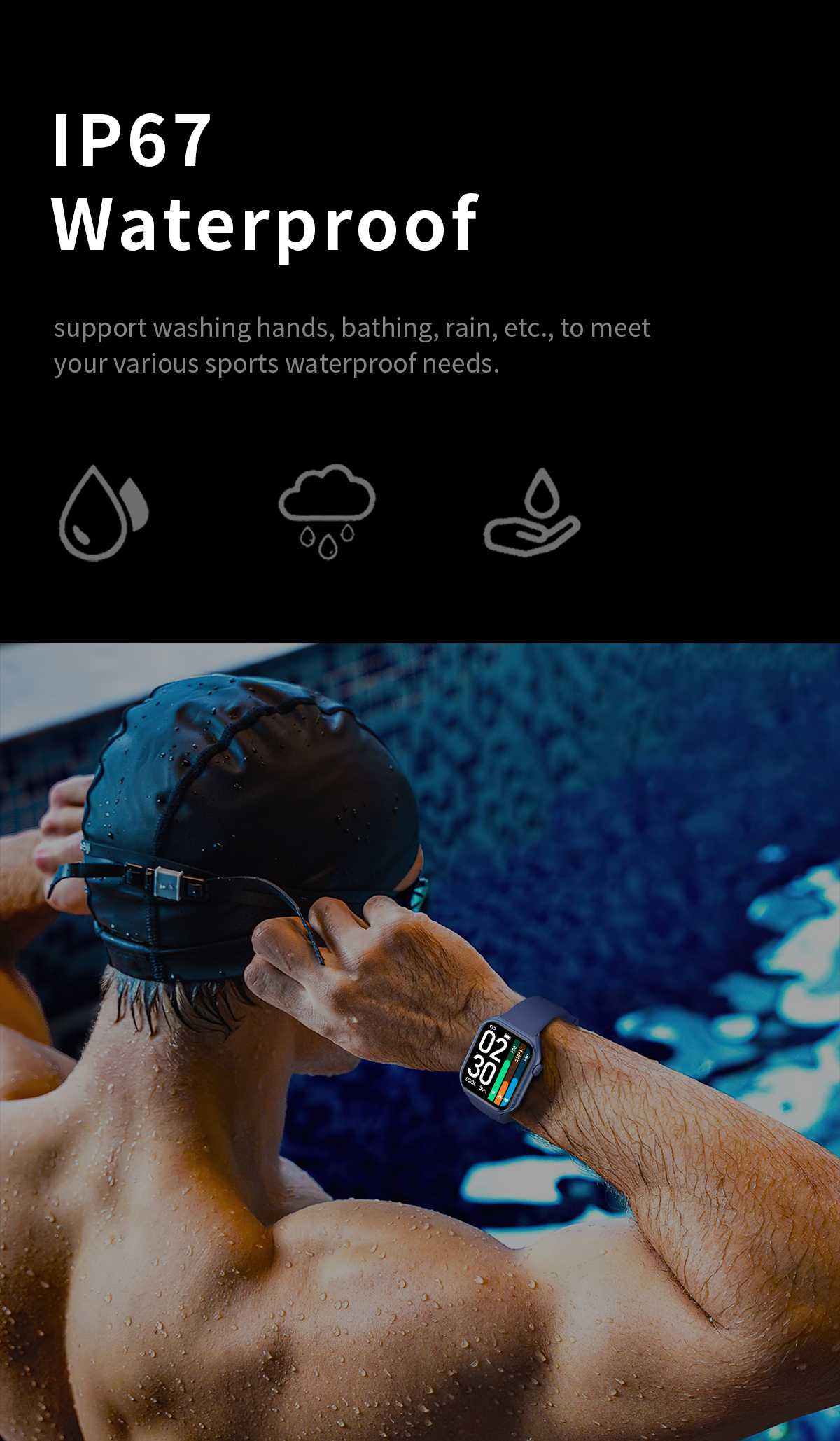 Bluetooth call watch Q32, 60Hz high refresh rate, 2.1 ultra clear full screen, SOS emergency calll, binuclear MCU ACTIONS, personal voice assistant. Mornitoring health in all aspects, large battery capacity. IP67 waterproof.